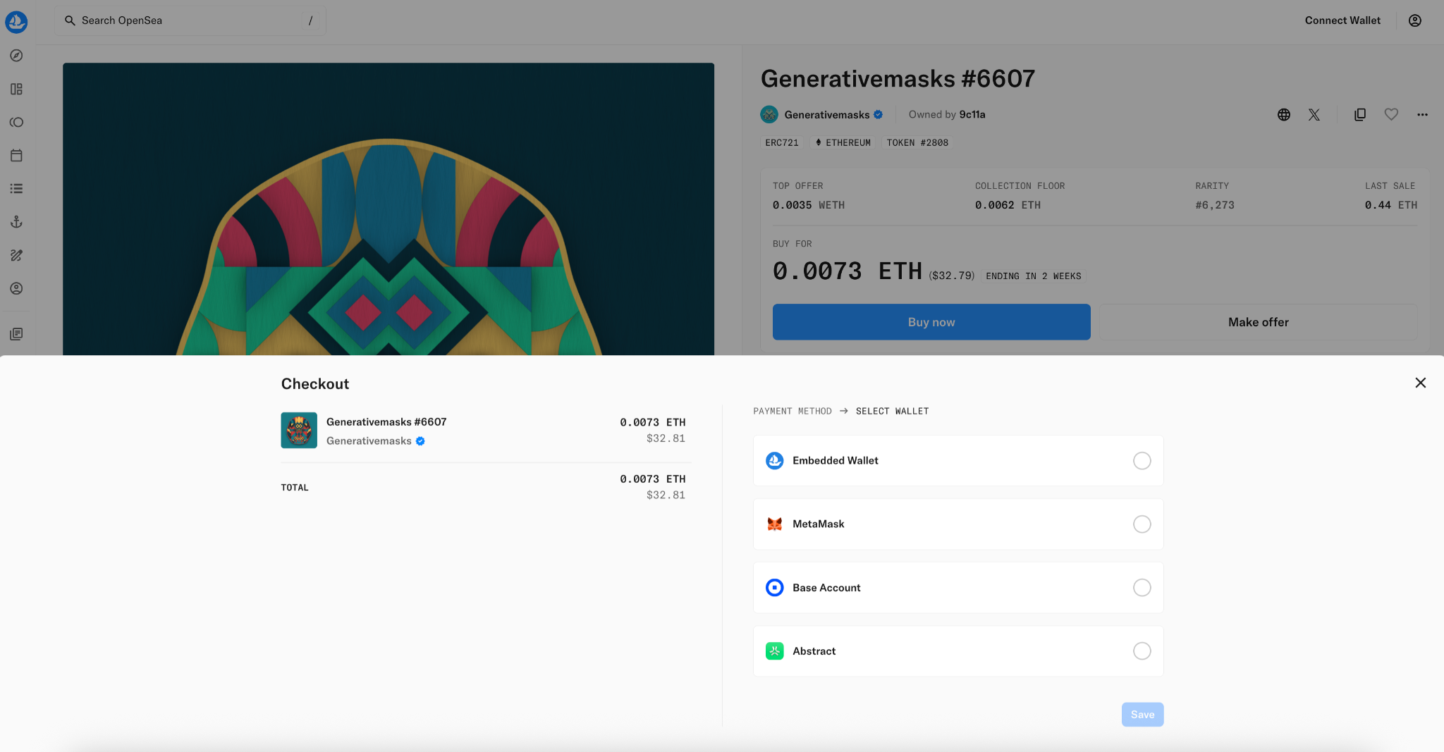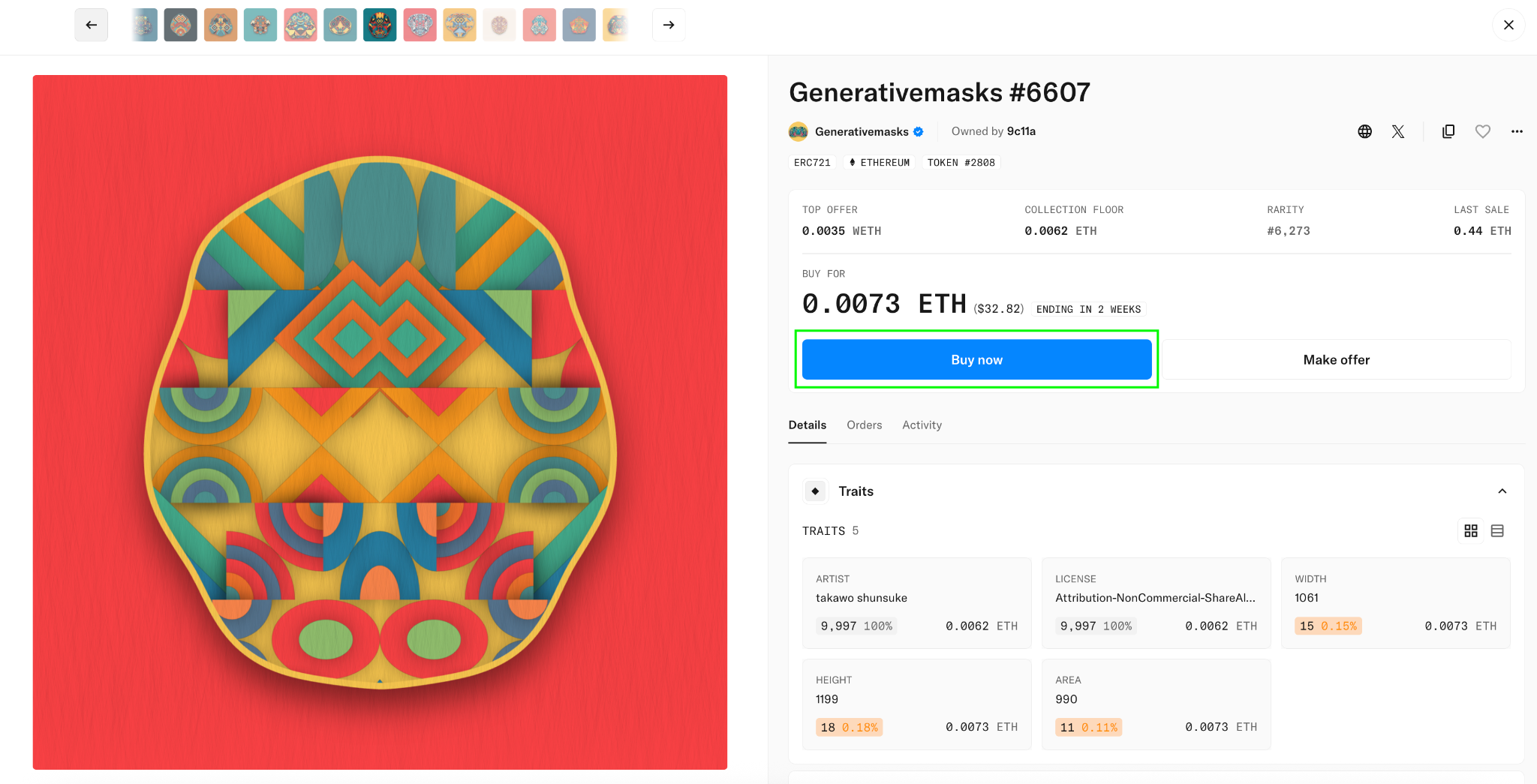 The “Buy now” button appears if a seller has already listed an NFT at a fixed price. If you click the “Buy now” button, OpenSea will redirect you to your wallet software, where you are prompted to sign a transaction to purchase the NFT. This is the simplest method.